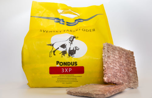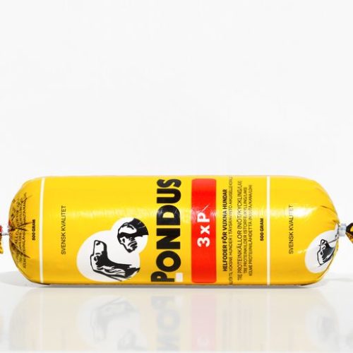 Pondus 3 x P är ett helfoder för normalaktiva hundar. Med enzymrik nötvom, omega 3 från lax och nyttiga fetter passar den de flesta hundar, eller hundar med lite sämre päls- eller hudkvalitet där omega 3 från lax kan bidra med förbättrad glans och mjukare trampdynor.